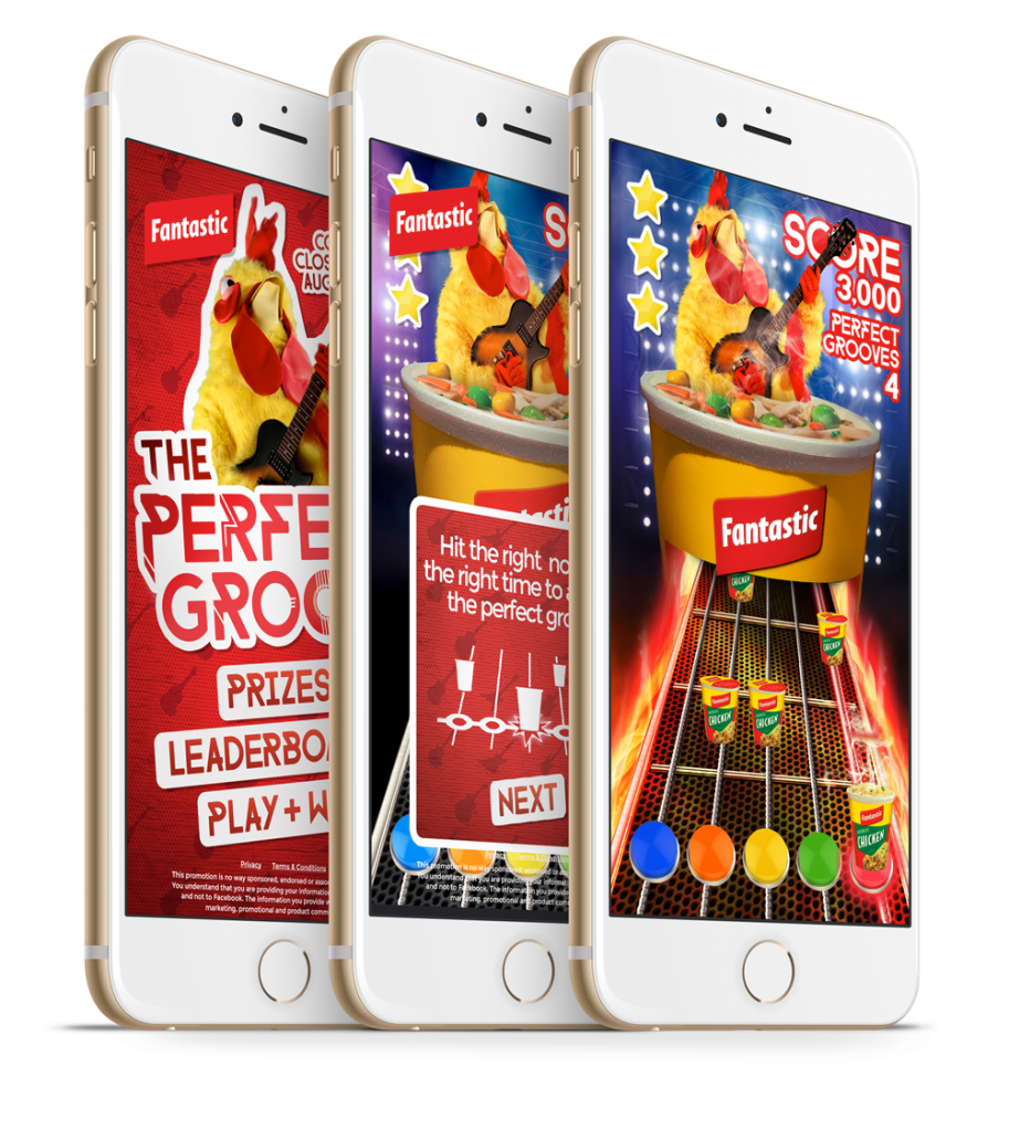 Building on Fantastic Noodle’s popular ‘Fantastic Chicken’ campaign we created a HTML5 game and Facebook content/promotion ‘The Perfect Groove’.