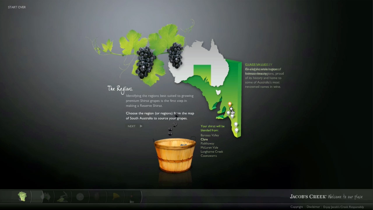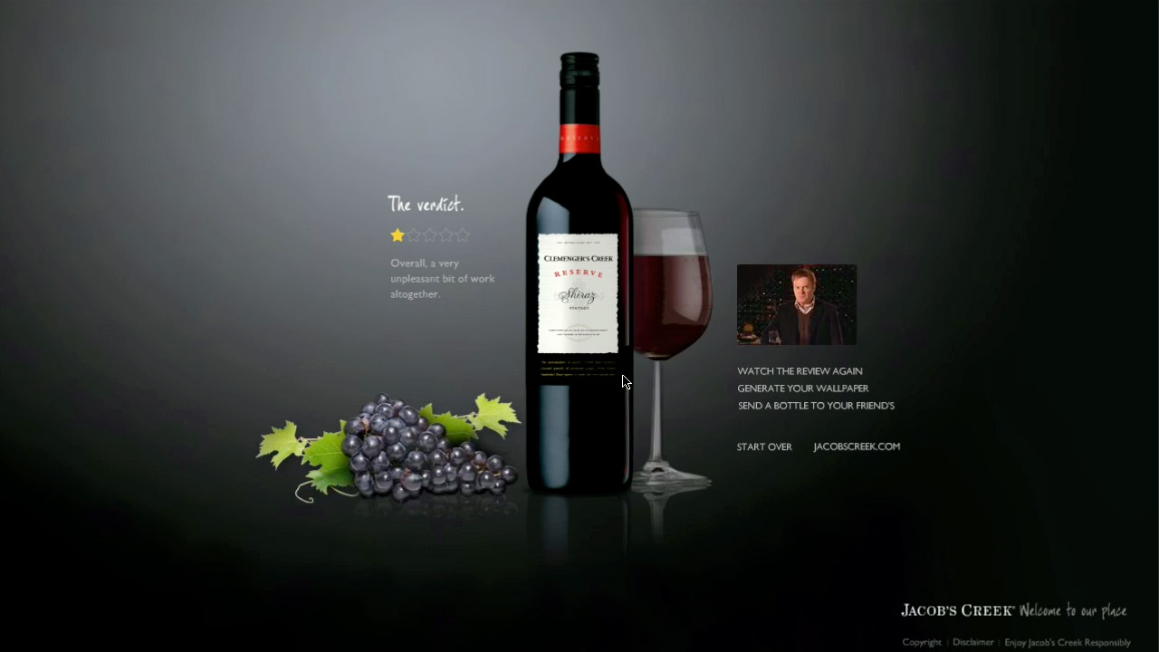 A sister microsite was also created for the Reserve range that educated people on the winemaking process by actually allowing people to create their own virtual wine. At the end of the process a video review was generated based on what you’d selected.